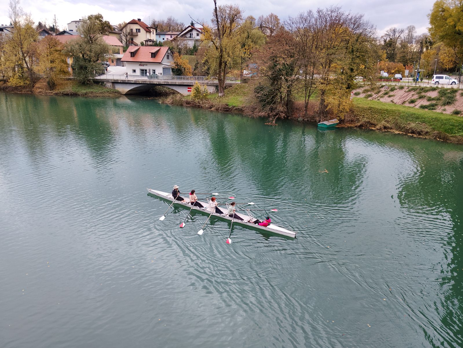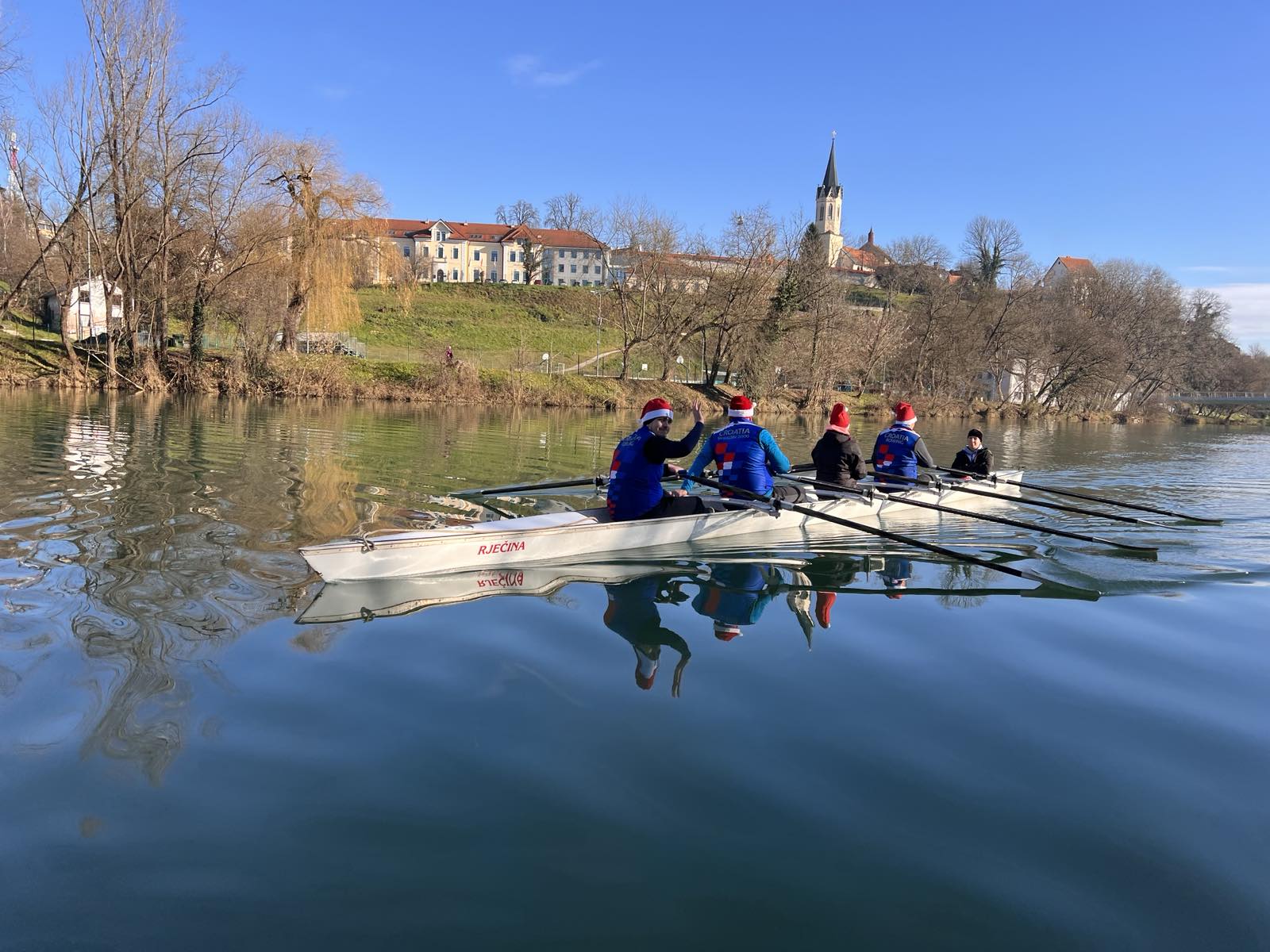 December je tako prinesel možnosti timskega veslanja. Z predstavitvenimi vožnjami v varnem vadbenem četvercu z krmarjem, smo veselo razgibali in oživljali gladino Krke. Veslanje z božičkovimi kapicami pod adventno okrašenim kandijskim mostom pa je ustavljalo meščane na mostu ter doživeto mahanje otrok, spreminjalo, v prisrčna praznična voščila.